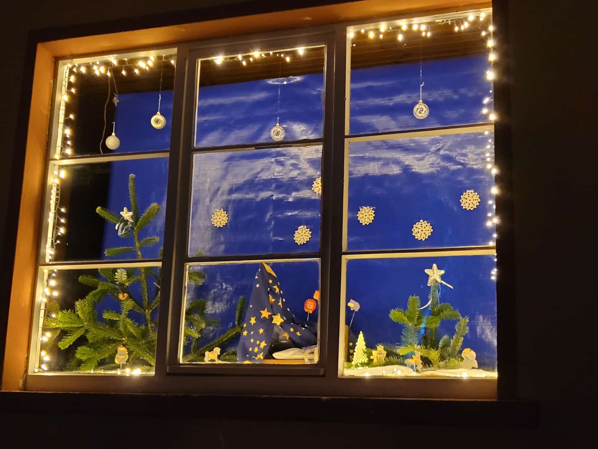 Unser liebevoll von Hannah Gabbert gestaltetes Weihnachtsfenster wurde durch die Geschichte, vorgetragen von Elke Zurheide, ergänzt. Abgerundet wurde die Szenerie durch die musikalische Begleitung von Clara, Sina, Sinah und Ellen. Nochmals vielen Dank für eure Zeit und und Bereitschaft die Erzählung musikalisch zu begleiten!